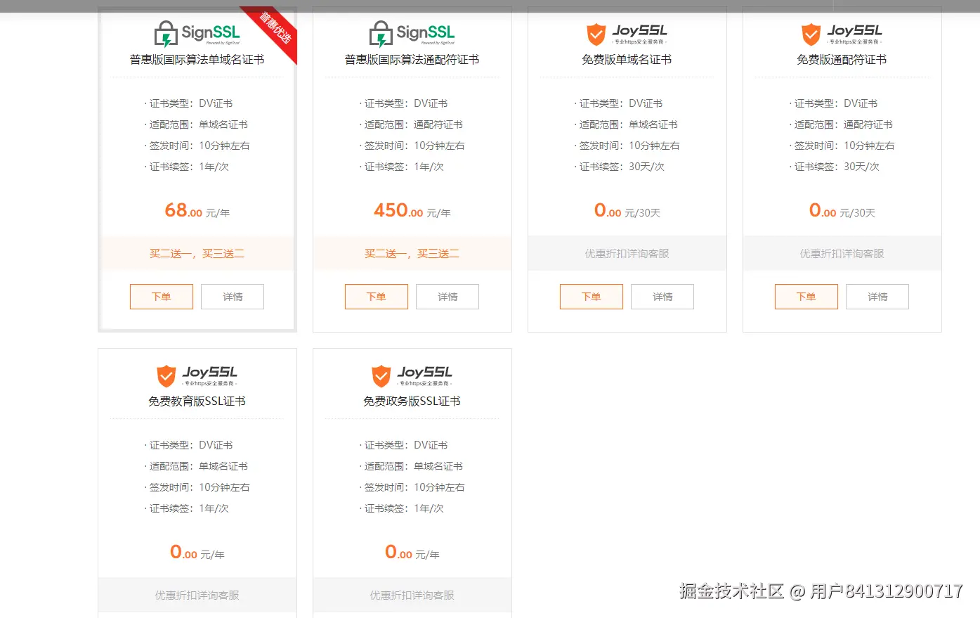 c. 选择一年期免费证书并下单。