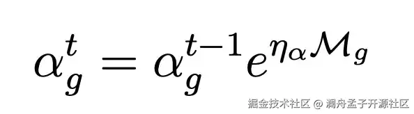 权重 α 更新。tDRO 通过指数梯度上升更新权重 α,领域 g 的损失度量 M 越大,权重更新量越大。