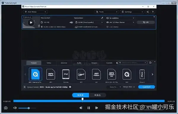 Movavi Video Converter是一款高效、快速的视频格式转换器,用户使用这一工具将mov转换mp4格式可以输出较高质量的视频文件。