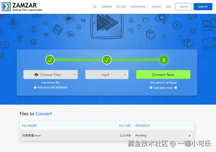 如何把mov文件转化为mp4格式?Zamzar支持1100多种格式转换,其中包括将mov转换为mp4格式。