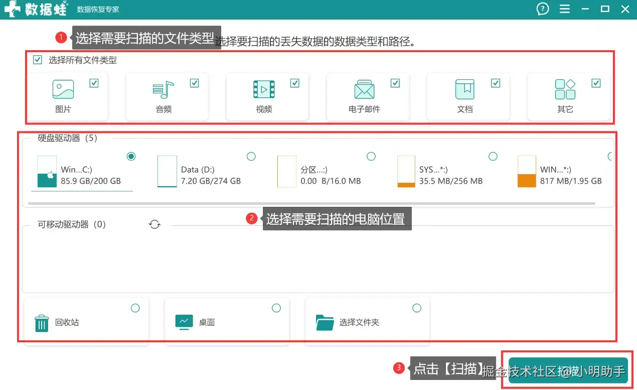 文件不小心移动了怎么恢复?使用数据 蛙恢复专家可能能够找回文件,具体操作如下: