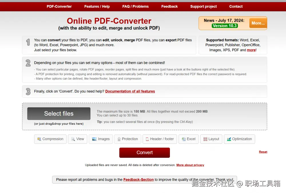 Online2PDF 适合注重界面简洁、转换速度快以及需要批量转换的用户。