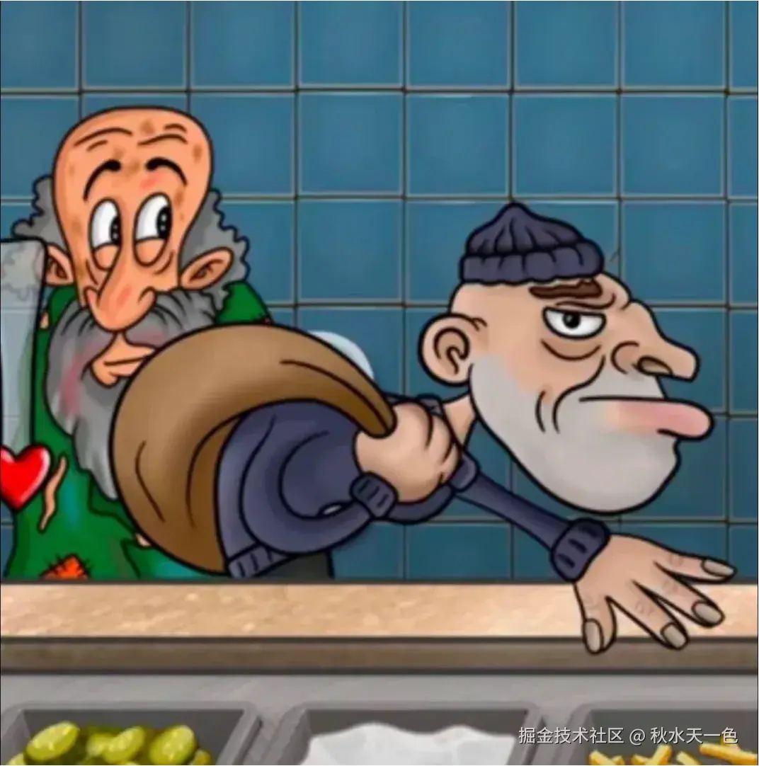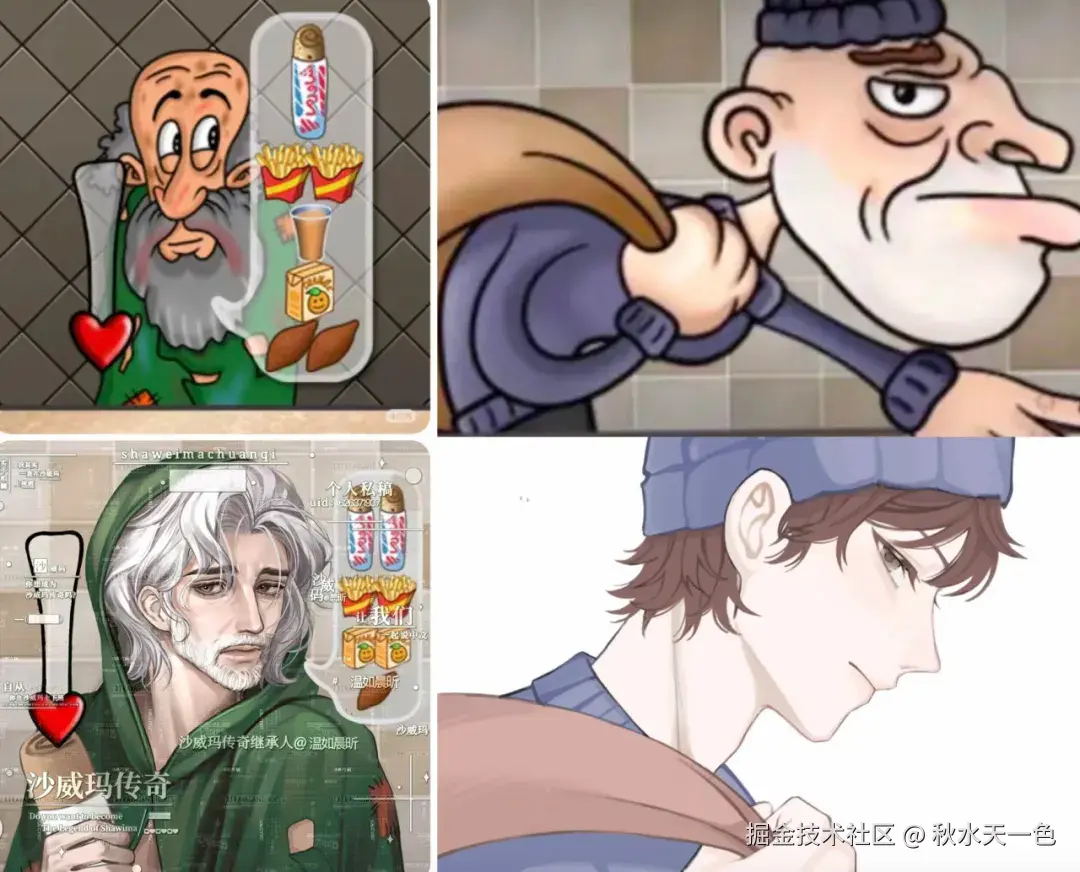 在所有二创里,最惊掉人下巴的当属同年女对乞丐、小偷角色的二次创作。要知道沙威玛游戏里的乞丐和小偷实在是惹人讨厌,一个要求多多但不给钱,一个趁着你专心烹饪时拿走桌台所有的钞票。在游戏里的他们,长这样: