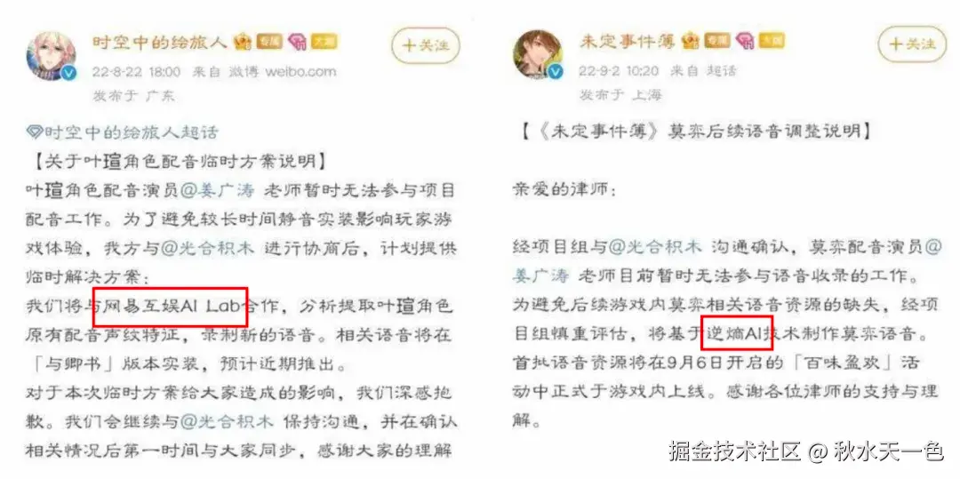 至于AI配音,米哈游旗下【未定事件簿】与虚拟偶像鹿鸣就早早用上了逆熵AI,同样是受配音演员档期影响,网易乙游【时空中的绘旅人】也换上了AI配音。
