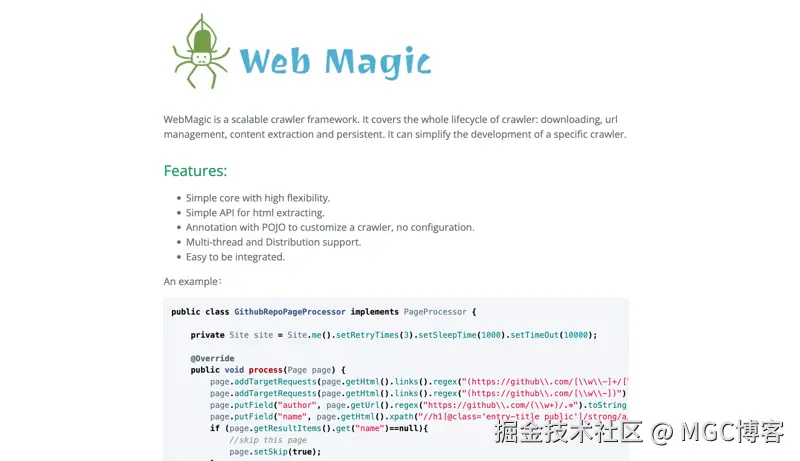 - 对于已经在 Java 生态系统中的项目,集成 WebMagic 比集成来自不同语言或平台的工具更加无缝。