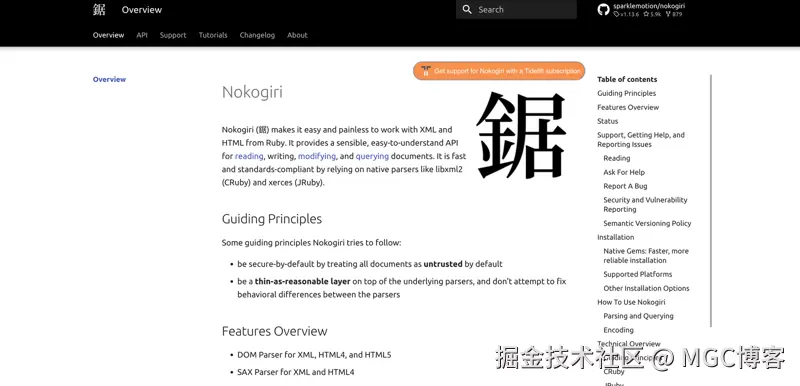 - 由于其底层实现采用 C(libxml2 和 libxslt),Nokogiri 速度极快,尤其是与纯 Ruby 库相比。