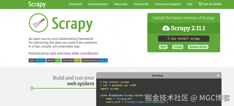 Scrapy 是 Python 生态系统中最完整、最流行的网页抓取框架之一。它是使用事件驱动的网络框架 Twisted 编写的,赋予 Scrapy 异步功能。