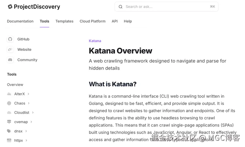 Katana 是一个专注于速度和效率的网络抓取框架。它由 Project Discovery 开发,旨在促进从网站收集数据,同时提供一组为安全专业人员和开发人员量身定制的强大功能。 Katana 允许您使用简单的配置格式创建自定义抓取工作流程。它支持各种输出格式,并可轻松与安全生态系统中的其他工具集成,这使其成为网络爬行和抓取任务的多功能选择。