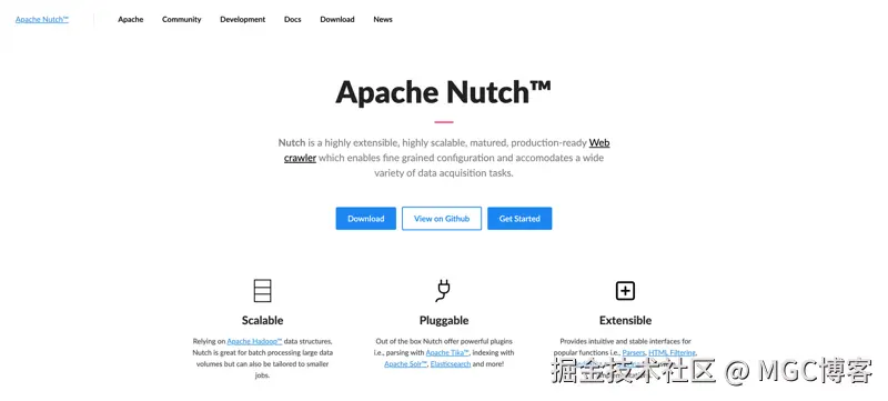 - 作为 Apache 项目的一部分,Nutch 受益于强大的社区支持、持续更新和改进。