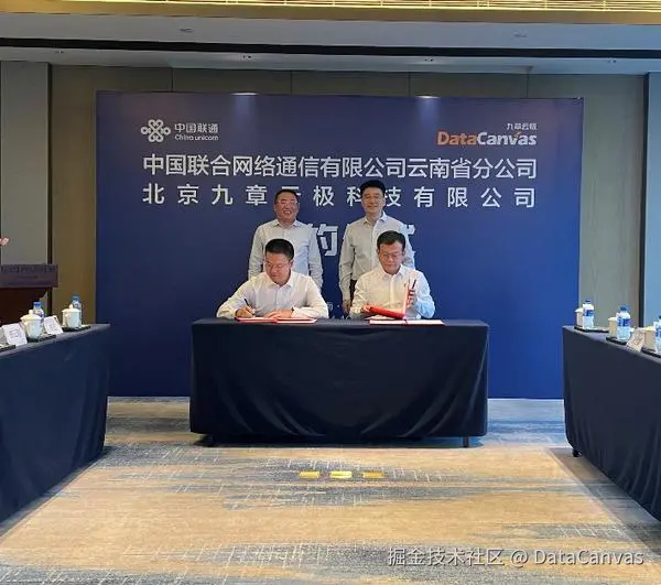 近日,九章云极DataCanvas公司与中国联合网络通信有限公司云南省分公司(以下简称云南联通)在昆明正式签署 《中国联通两亚“国际”智算中心联合运营协议》 ,标志着双方将共同推进建设云南省首个千P级高性能智算中心,开启普惠算力新篇章。