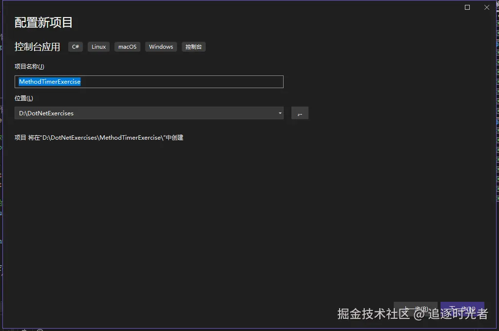 创建名为:MethodTimerExercise的控制台应用。