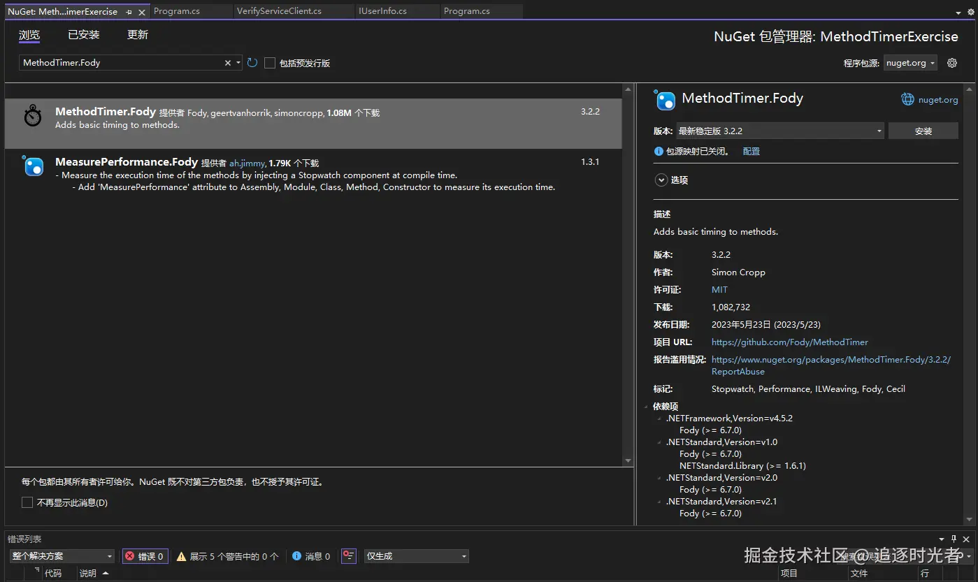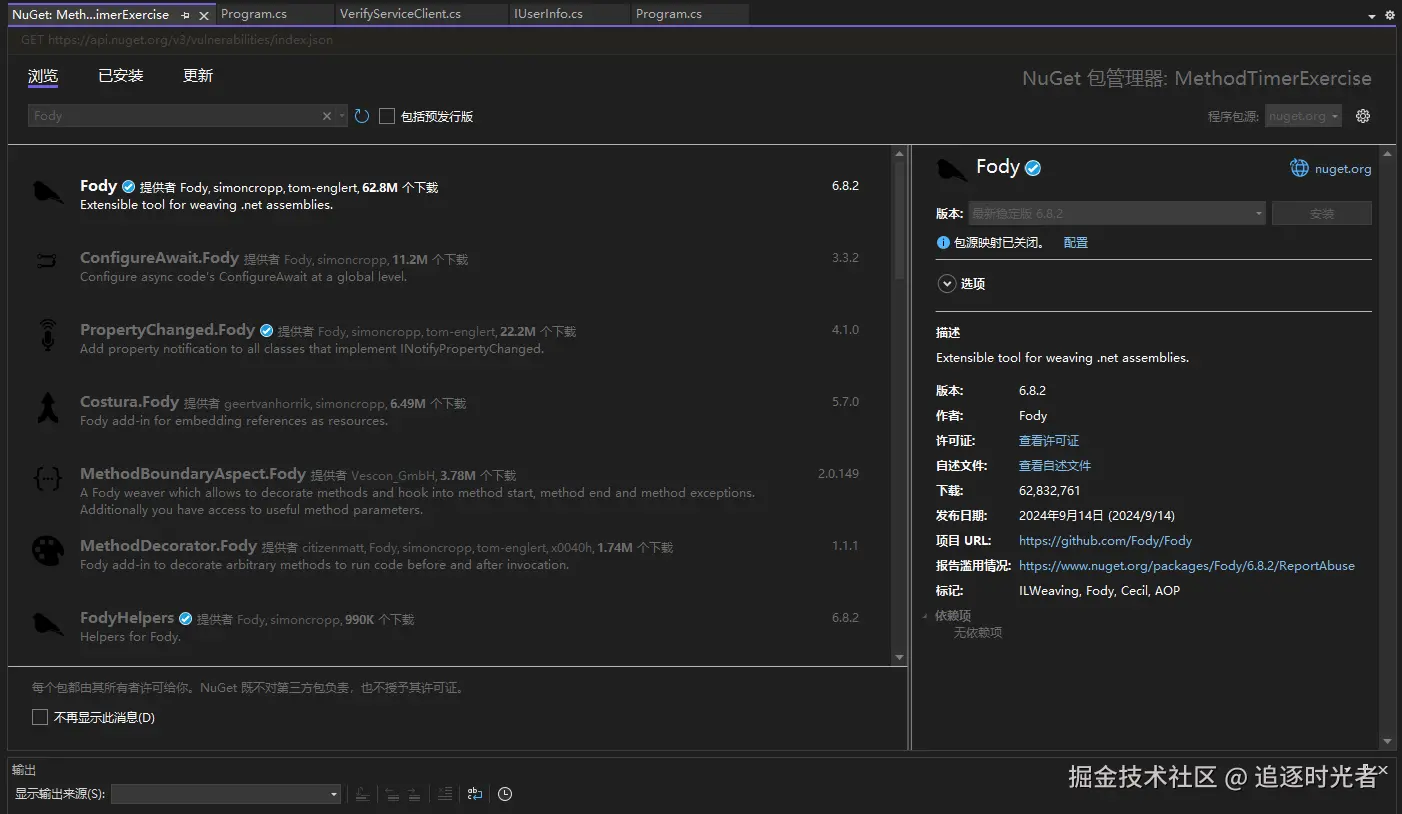 搜索MethodTimer.Fody安装: