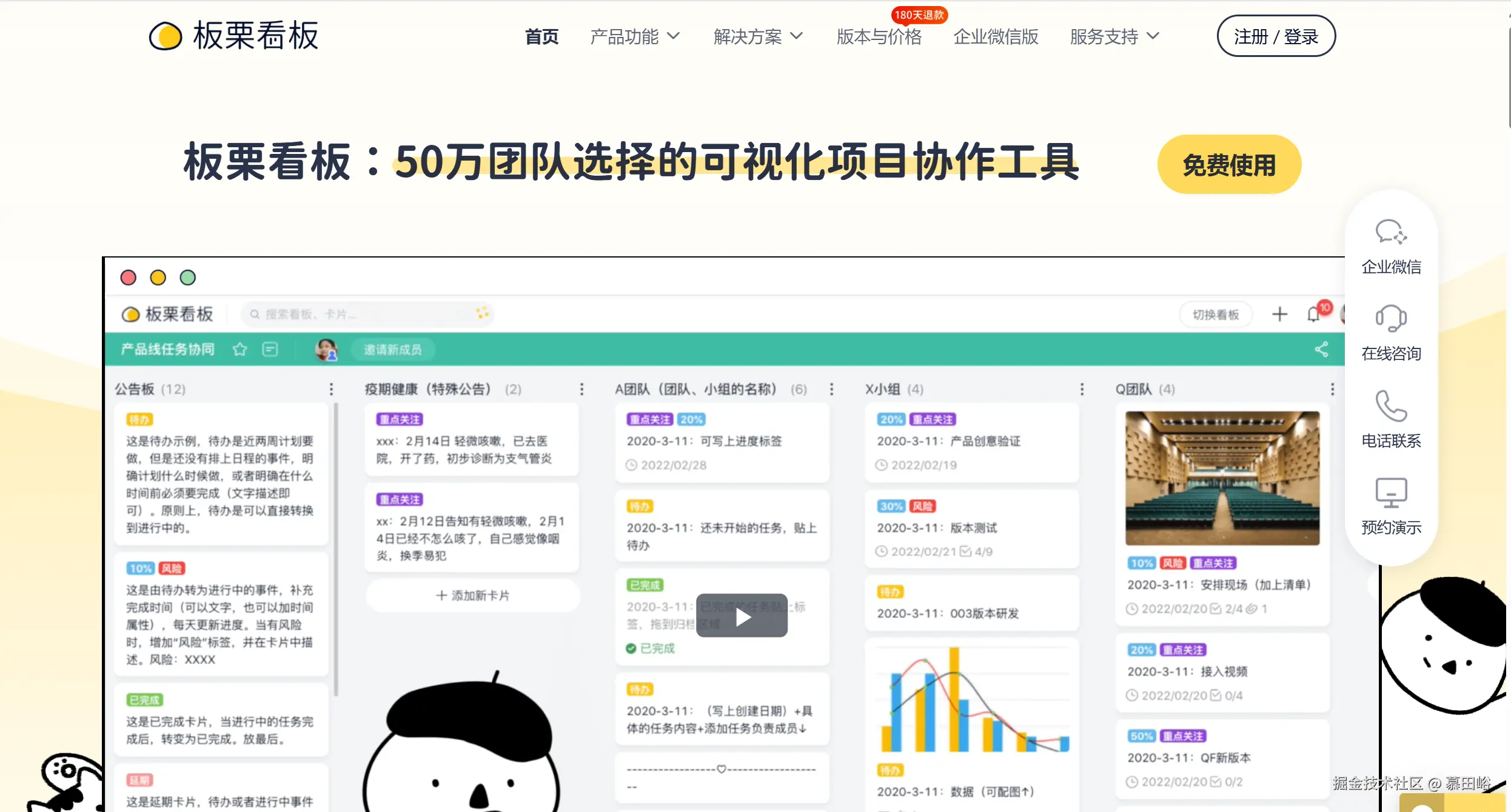 板栗看板是一款灵活的项目管理工具,尤其适合互联网企业和技术团队。它通过可视化看板的方式,帮助团队在任务管理、进度追踪和协作方面更高效。板栗看板的特点是支持多种项目模板,能够快速适应不同类型的共性技术需求。此外,其企业版提供的多层级权限管理和自定义字段,适合大型企业对数据安全和团队协作的需求。