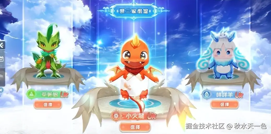 帕鲁元素在【蛋寶物語】中的运用——蛋宠成为游戏锦上添花的配套机制,其陪伴属性和成长属性丰富了游戏体验,不同的职业选择有更适配的宠物选择和培养方案,结合起来不生硬突兀。游戏开局经典的御三家草、水、火三系蛋宠选择,让玩家一瞬间梦回洛克王国、赛尔号等童年游戏。