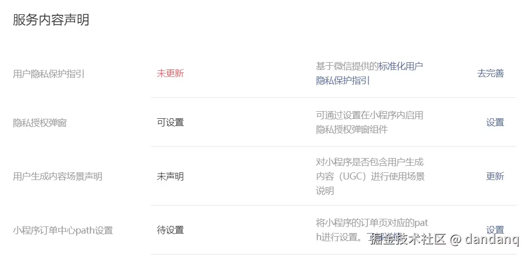 - 点击【用户隐私保护指引】的【去完善】按钮