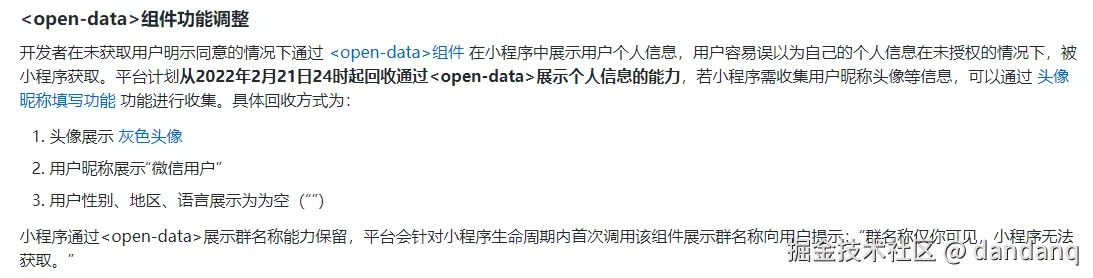 文档中提到了有不需要用户授权的方式,但是仔细查阅其他文档,发现该能力已经收回。(如下图,详见:developers.weixin.qq.com/community/d…