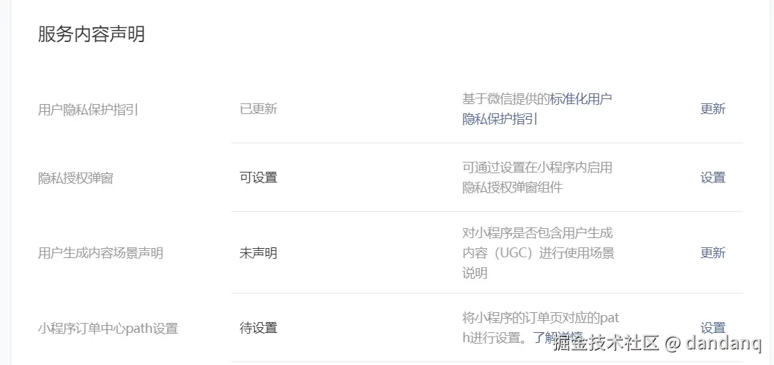 - 在【基本设置】tab 中,往下翻到【服务内容声明】部分
