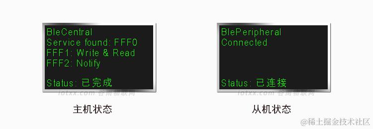 当从机收到连接请求后,双方成功建立连接,此时双方的状态均变为已连接状态。