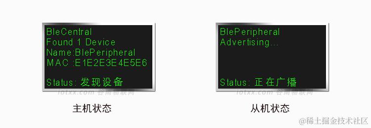 此时,主机正在扫描,从机仍然处于广播状态。