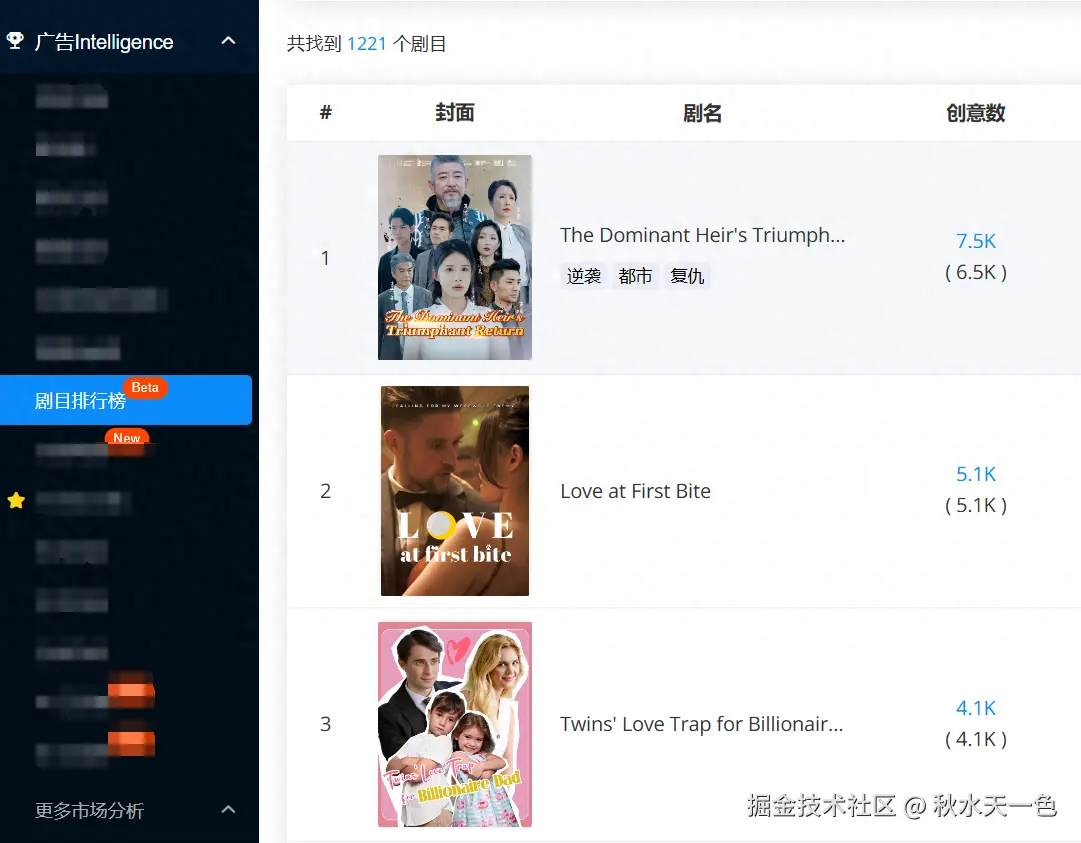 气温骤降,但短剧出海的热度可未曾降低,老剧目持续高额投放,新剧目也奋力追赶,好不热闹。为了帮助各位短剧玩家能在出海的航路上更加顺利,广大大最新推出了“剧目排行榜”来帮助各位了解市场上最为火热的出海剧目,时刻掌握最新短剧出海趋势(功能详情见广大大-广告-intelligence-剧目排行榜,目前为Beta测试版本,可联系商务获取试用资格)。