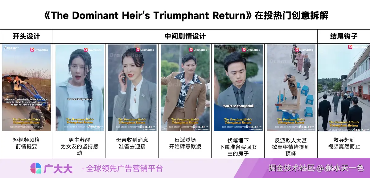 总之,短剧在国内进行过一轮冲杀后,无论是翻译后出海还是剧本改编后本土化出海都可以继续创造价值,这类题材即使在国内已经见怪不怪,但在海外还是拥有庞大的潜在客户,非常值得我们去深入挖掘。在后面我也将对这些剧目进行持续观察,欢迎关注我们的公众号“广大大出海笔记”,我们未来还会继续更新相关内容。