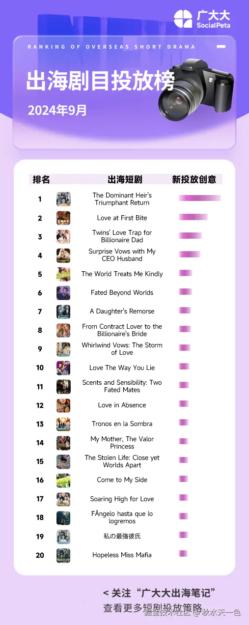 出海短剧剧目投放榜单TOP20