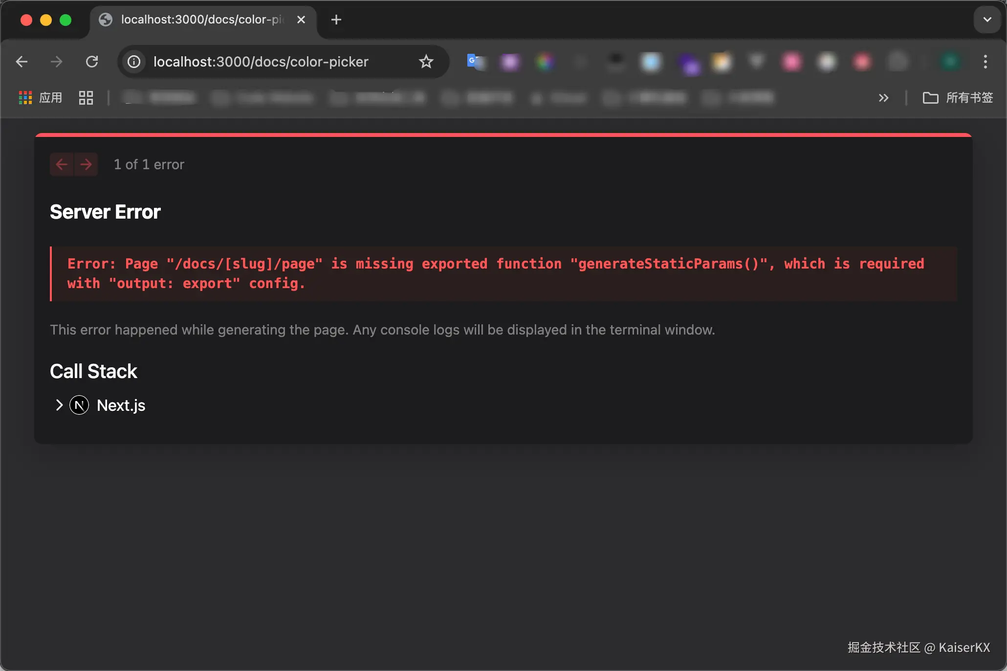 一开始,如果没有指定generateStaticParams()函数,启动页面就会报错: