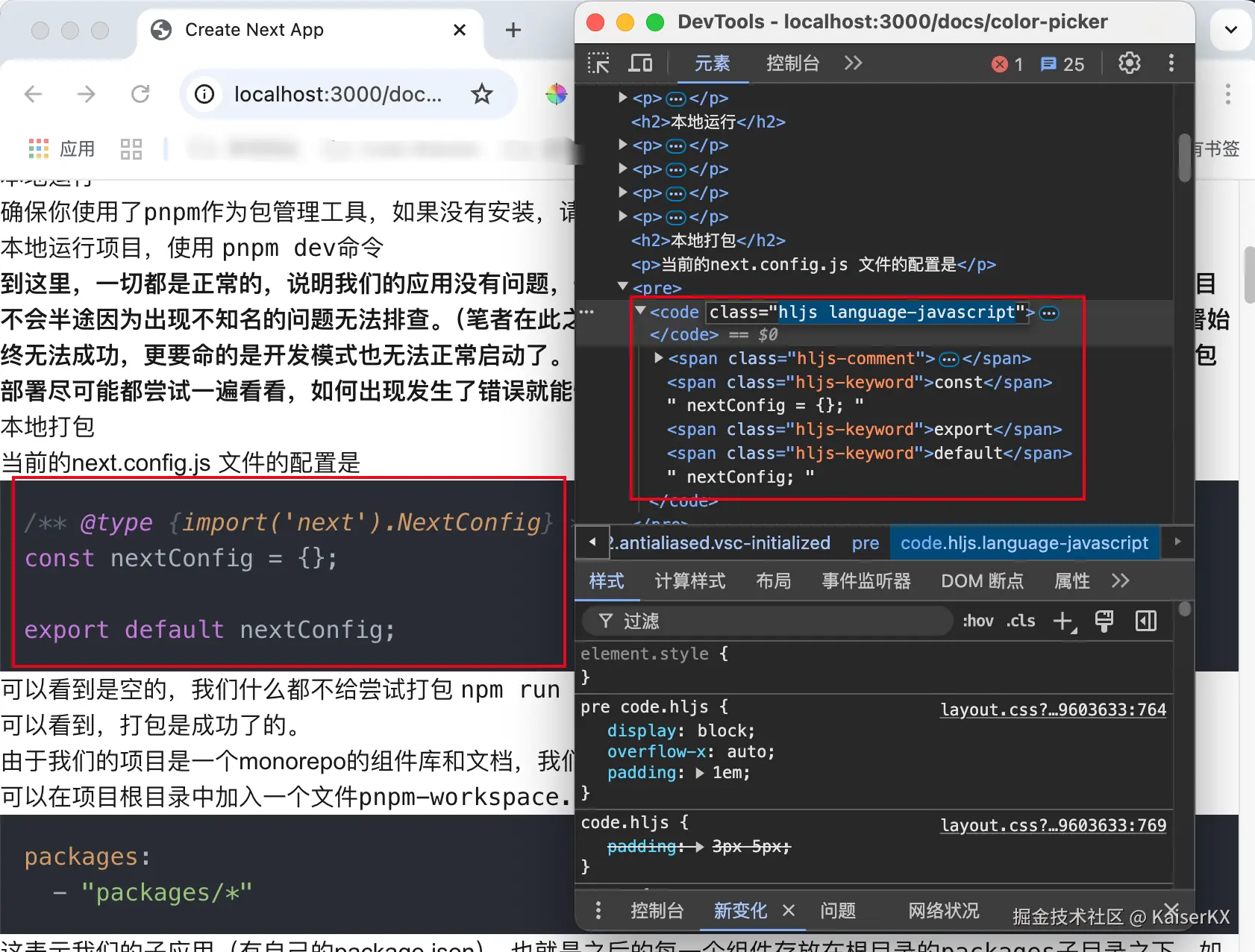 可以看到,MDXRemote里的配置和next.config.js完全一致,继续刷新浏览器,可以看到上线了正确的断行还有highlight代码块解析。