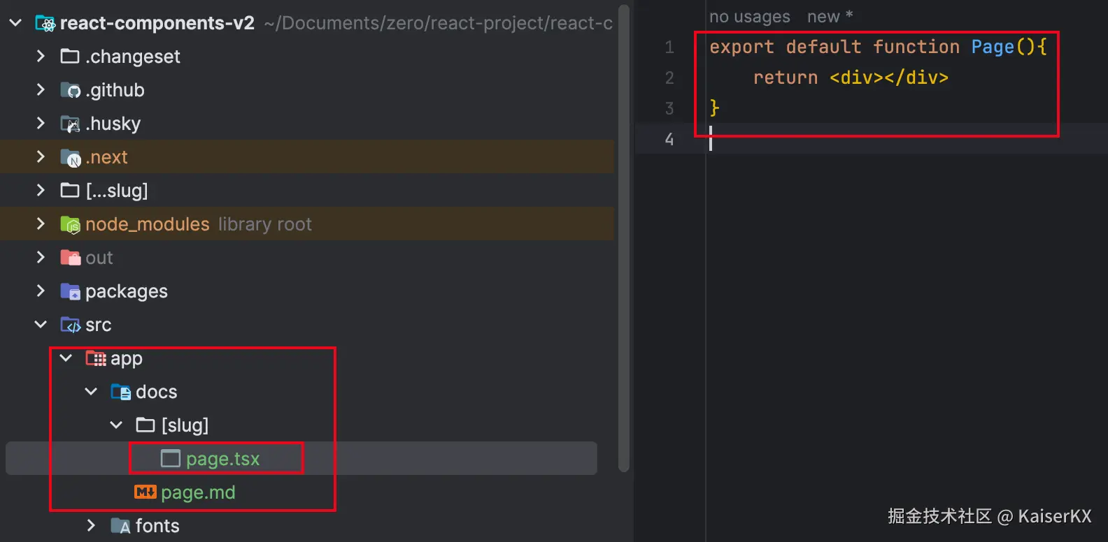 由于我们最终通过/docs/[slug]路径访问,这个[slug]可能是image-gallery也可能是color-pciker,因此[slug]是个动态路径,于是我们的next.js也需要使用动态路由的方式构建我们的文档(PS:如果你对nextjs的路由不够了解,可以参考@神说要有光 大佬 的 《Next.js 的路由为什么这么奇怪?》)。