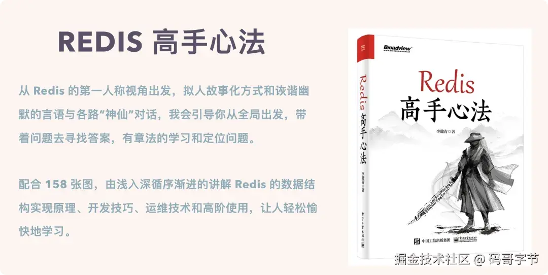 最后,也向大家介绍下我的新书《Redis 高手心法》。本书基于 Redis 7.0 版本,拟人故事化方式和诙谐幽默的言语与各路“神仙”对话。
