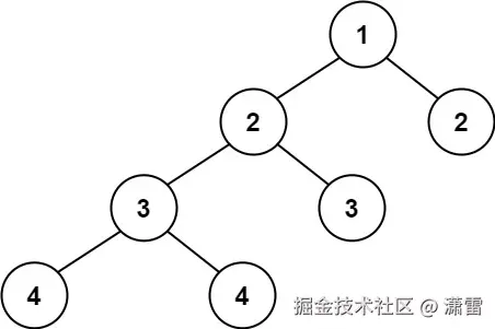 输入: root = [1,2,2,3,3,null,null,4,4] 输出: false