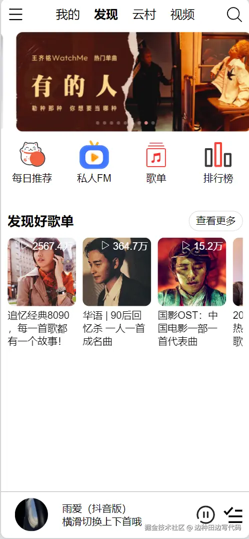 - 歌单功能实现