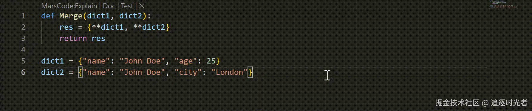 选中代码片段后,你可以向豆包 MarsCode 编程助手发送代码解释指令。编程助手将解释选中的代码片段。
