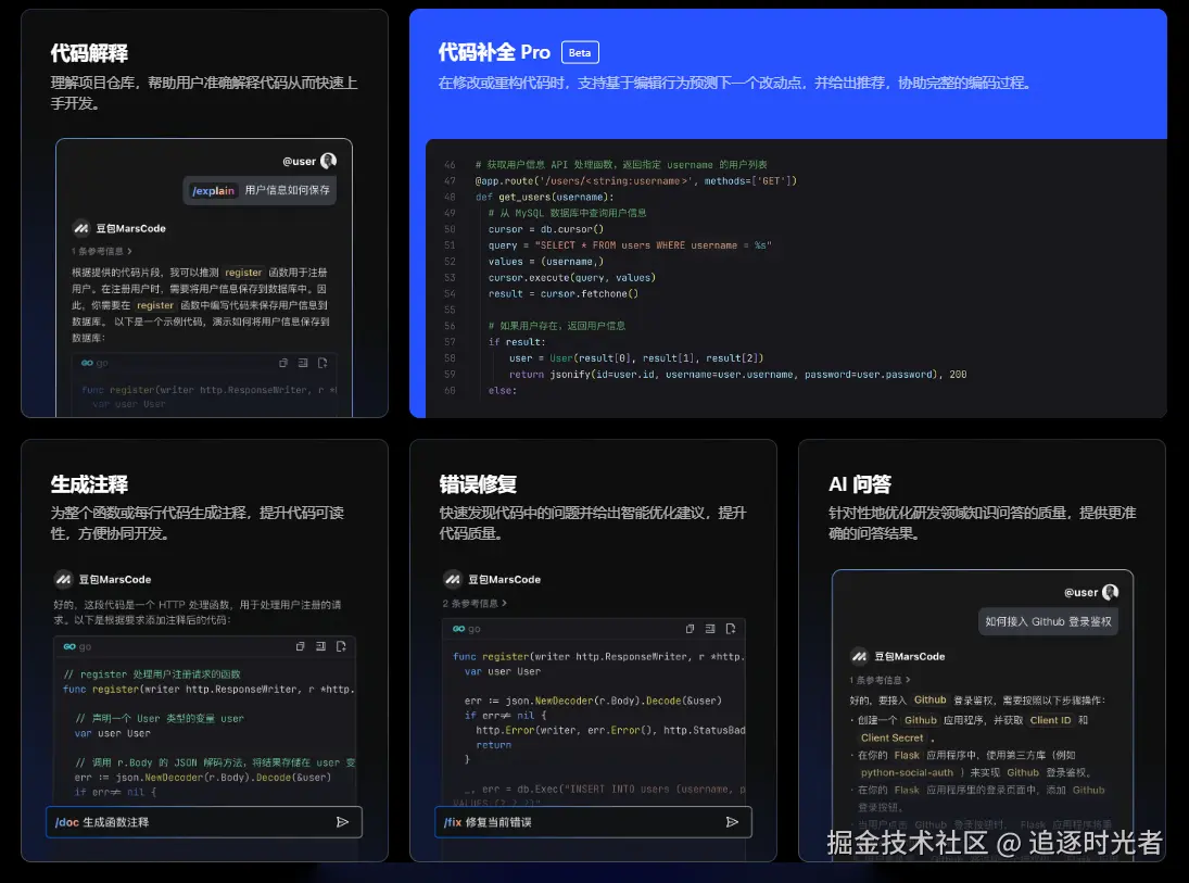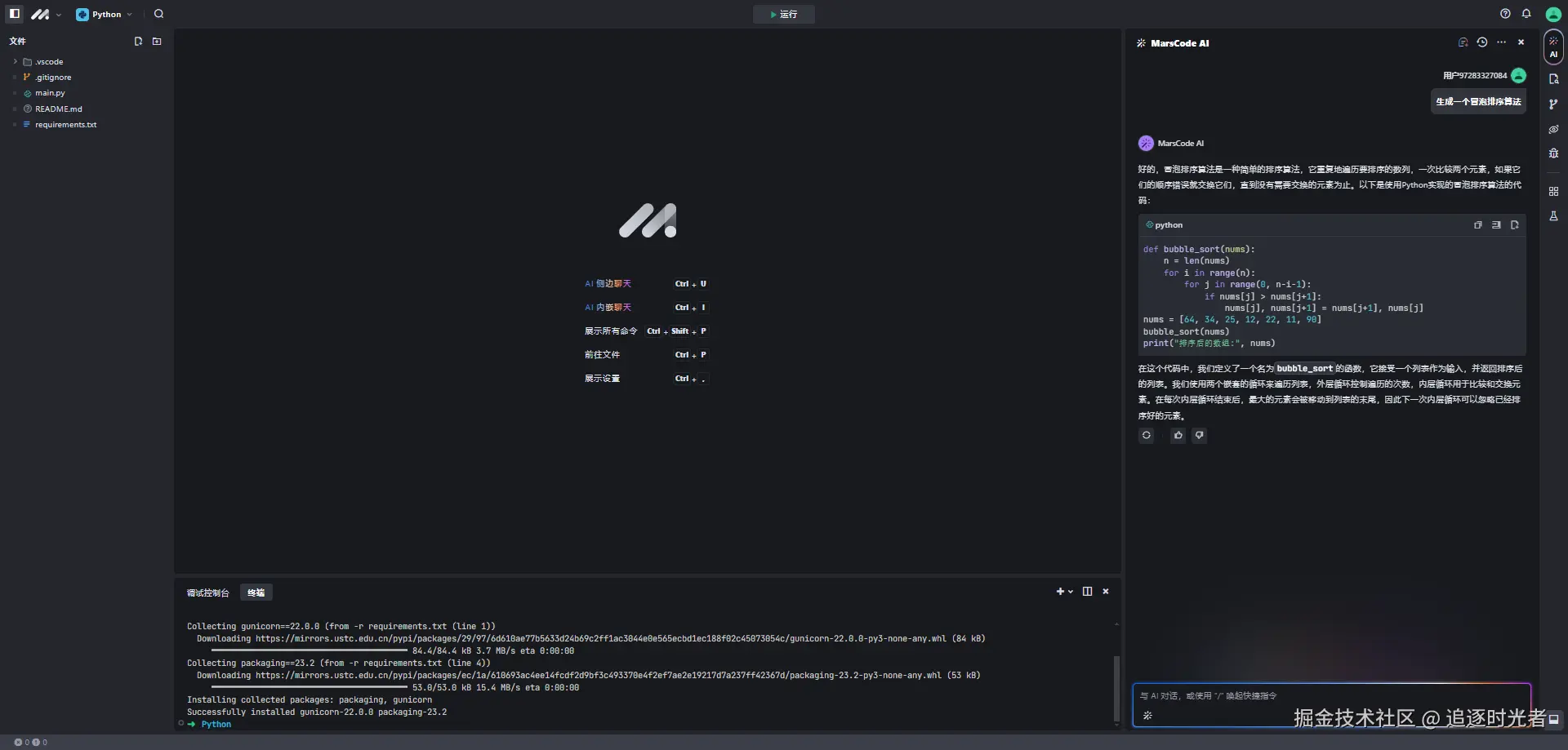 AI编程助手在软件开发和编程过程中发挥着重要的作用,它们通过提供智能的代码补全、代码审查、知识共享和学习等功能,显著提升了开发者的生产力和代码质量。随着技术的不断发展,AI编程助手的功能和性能将进一步提升,为开发者提供更加高效、智能和便捷的编程体验。今天给大家分享一款免费、功能强大、易于使用的智能AI编程助手:豆包MarsCode。
