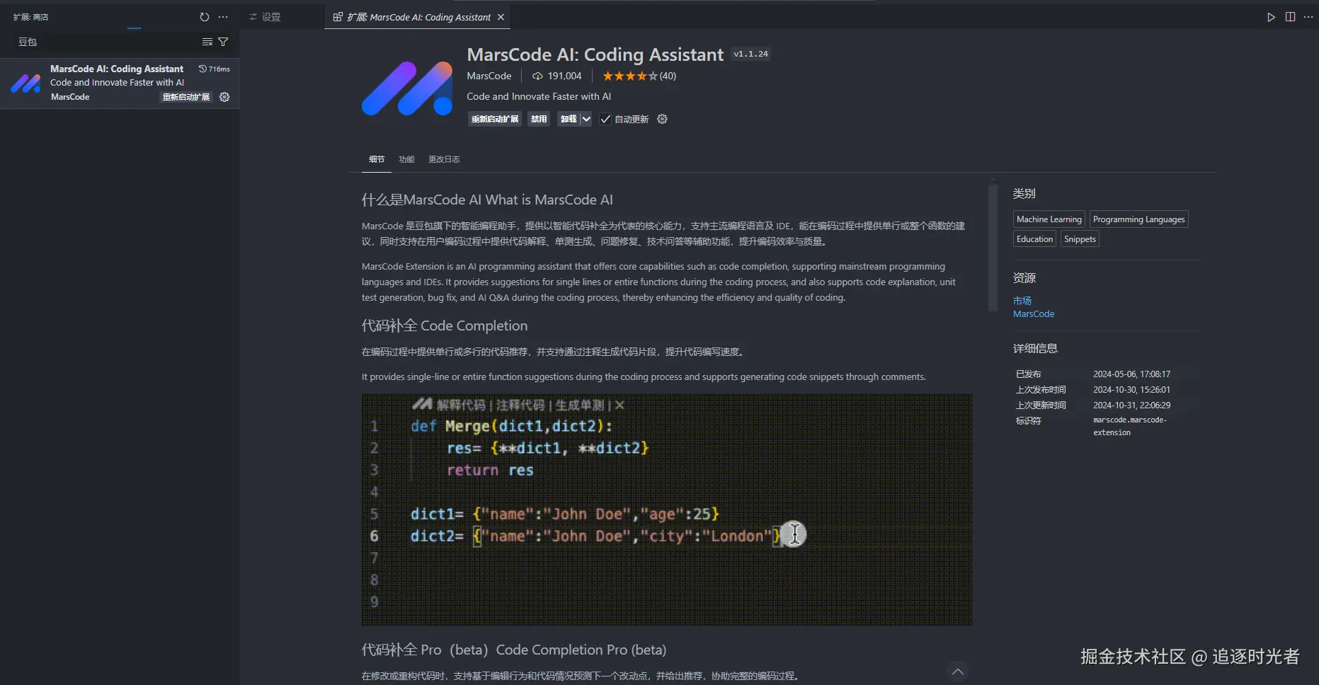 - 搜索 ”豆包“、”MarsCode“ 关键词,找到插件并安装。