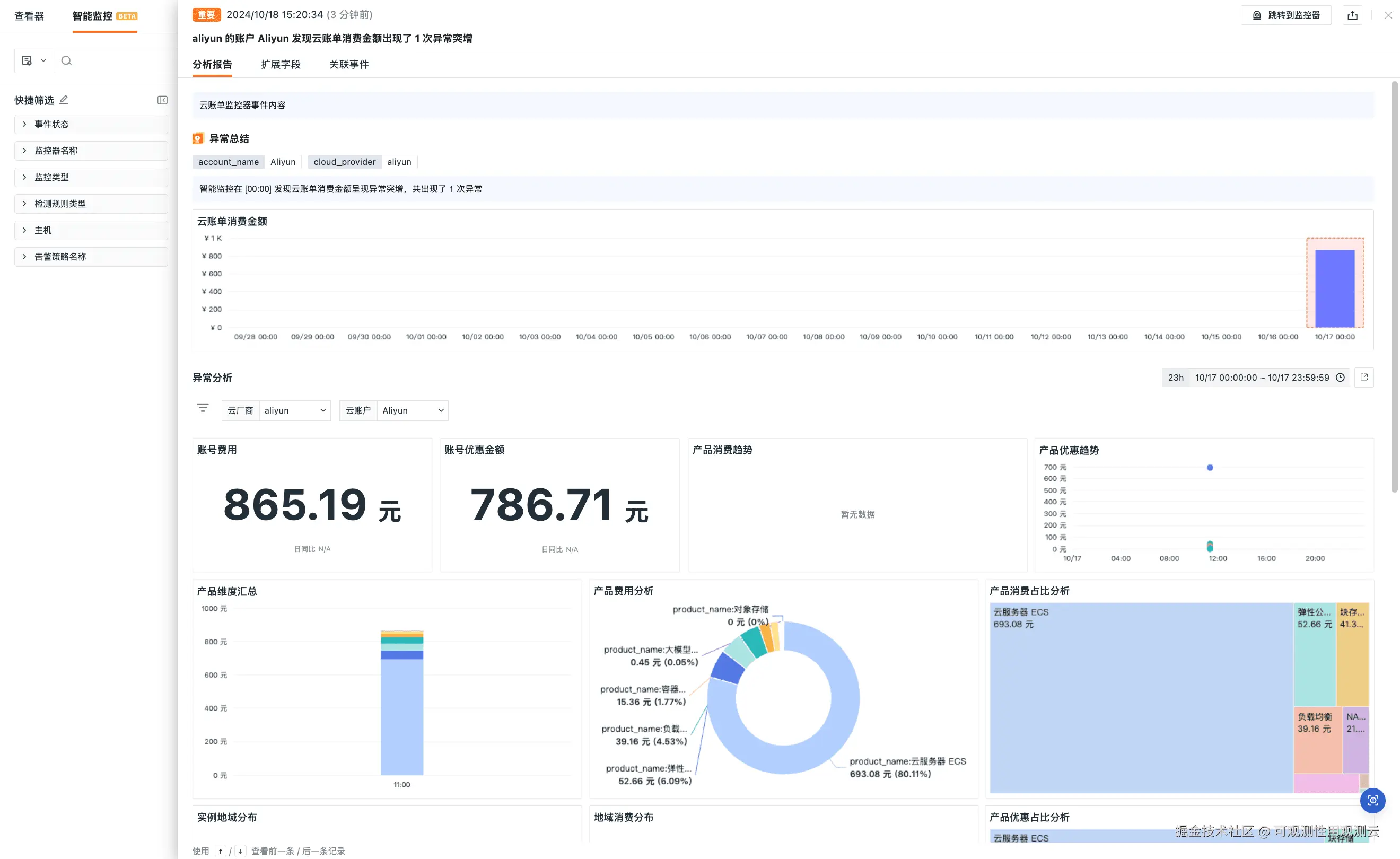 除了账单管理和分析,观测云还提供了实时监控和异常预警功能。这个功能会实时追踪各项服务的消费数据,一旦出现异常费用,系统就会及时发出预警,帮助企业迅速做出响应,避免意外的费用超支。对于需要精准预算规划的企业来说,这无疑是个非常贴心的功能。
