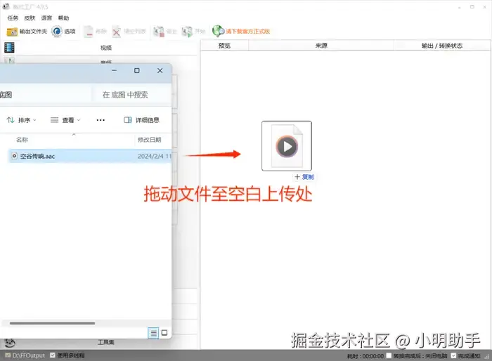 步骤1:打开下载安装好的格式工厂。将需要进行转换的音频文件拖动至首页界面中空白可上传处进行上传。