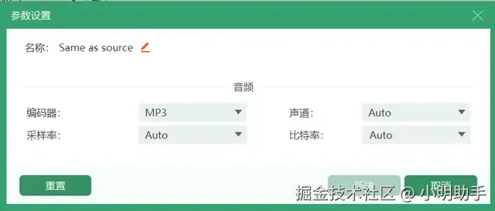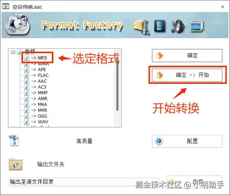 步骤2:选择【MP3】格式,点击【确定->开始】按钮,完成转换。