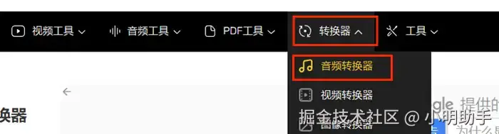 步骤2:点击首页上方的【转换器】,选择【音频转换器】。