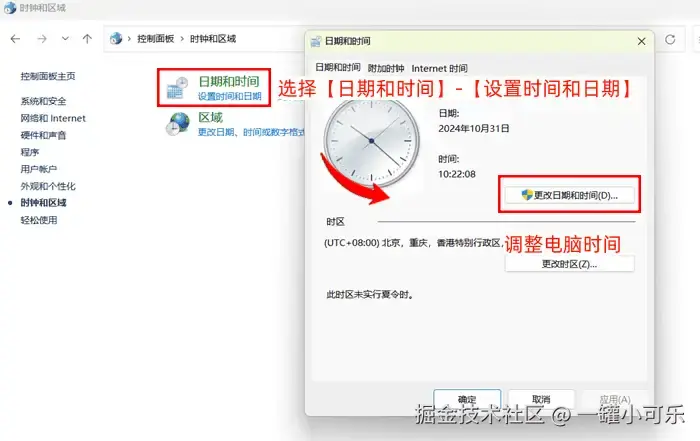 电脑时间不准怎么调整?电脑的控制面板中提供了设置时间和日期的选项,我们可以通过电脑搜索栏进入控制面板中,点击【时钟和区域】选项,然后点击【日期和时间】-【设置时间和日期】,即可调整电脑时间。