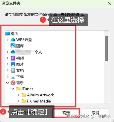 步骤3: 在弹窗选择恢复文件的存储位置。