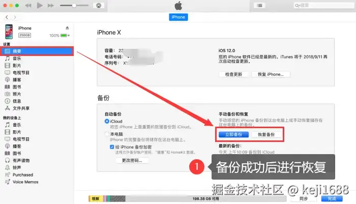 恢复步骤:使用USB线将手机连接到电脑上,并打开iTunes软件。然后,选择【恢复备份】选项,并选取包含您想要恢复的短信的备份文件。但此方法会覆盖您手机当前的所有数据,因此请务必提前做好重要数据的备份。