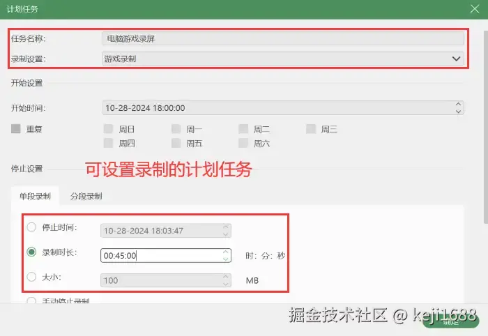 步骤2:对于游戏录屏,我们可以根据需求设置计划任务,自动为我们开启录屏,不需耗费过多的时间,也不怕错过屏幕上的精彩内容。