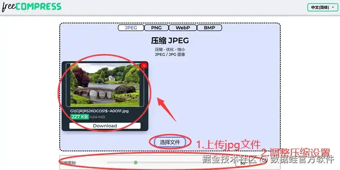 使用数据 蛙视频转换器压缩图片是将jpg文件变小的简单方法。该软件在提供了可调整的压缩参数设置外,还能保持图像的高质量,确保图像细节不受损失。用户可以根据需要调整压缩比例、输出格式等,以满足不同的压缩需求。软件支持批量压缩文件,节省了用户的时间,提高了效率。