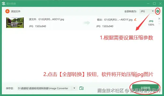 既然这些方法各有缺点,那有没有什么功能全面的软件呢?数据 蛙视频转换器不仅操作简便,支持批量压缩,还能在保持高质量的同时,满足用户不同的jpg图片压缩需求。通过调整压缩比例和质量参数,用户可以精确地控制压缩效果,是追求高效与质量的用户的理想选择。