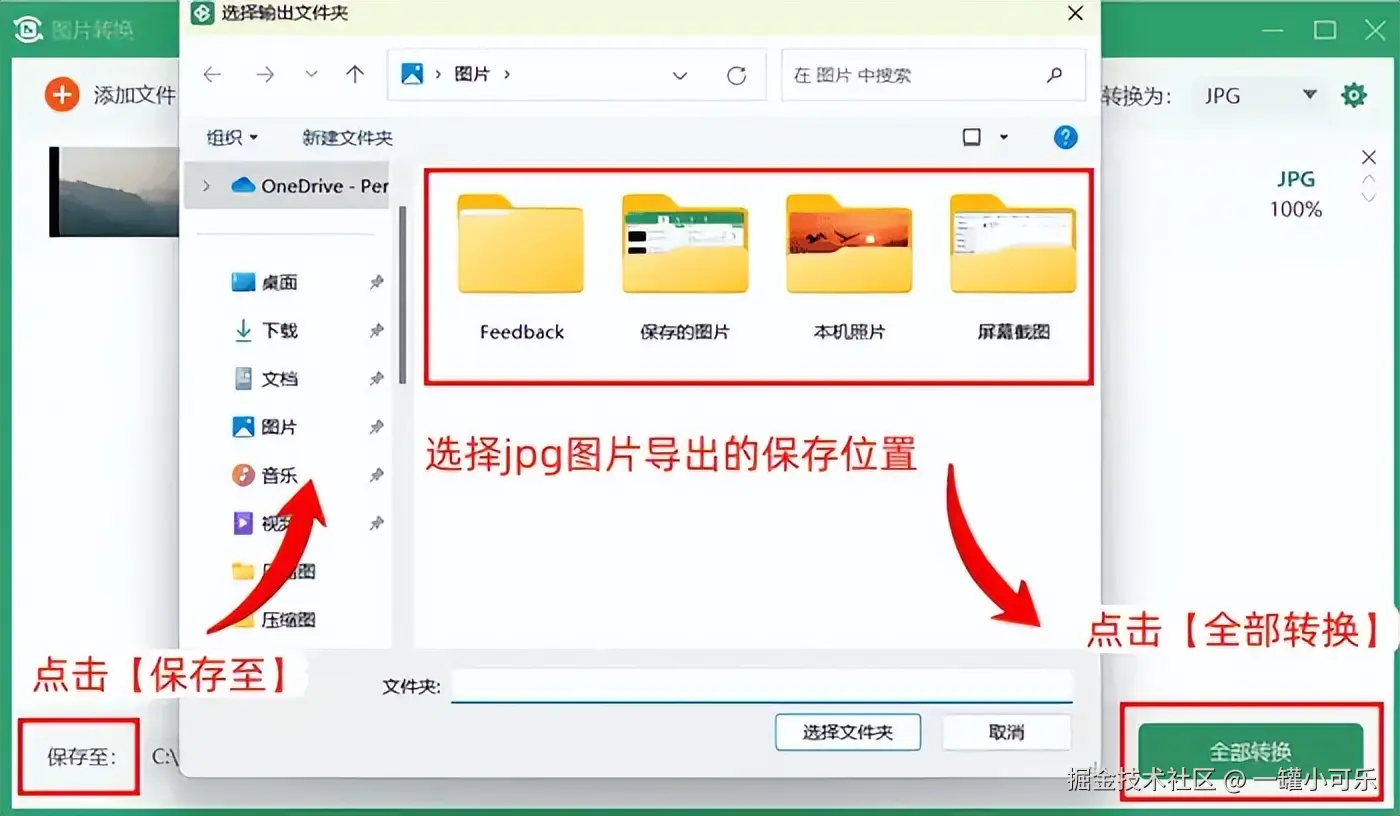 步骤3:在界面左下方,点击【保存至】选择jpg图片导出的保存位置,然后点击【全部转换】。