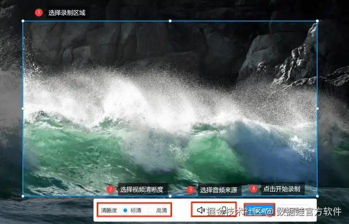 数据 蛙录屏软件为什么说是专业级录制的软件呢?以下几点优势或许能给你答案:它支持多种分辨率和帧率设置,无论你是需要无损画质还是标准画质,都能轻松驾驭。同时,它内置了高级音频引擎,确保录制的声音清晰无杂音,无论是系统音、麦克风音还是两者混合,都能完美呈现。接下来就一起看看操作步骤吧!