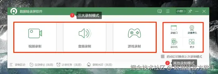 在本文中,给大家解答了录屏有声音吗这个问题,并推荐了3款好用的录屏软件。通过对3款录屏软件的对比,发现与QQ录屏和Xbox Game Bar录屏相比,数据 蛙提供了更多元化的录制模式,包括但不限于视频录制、音频录制、窗口录制等。这些模式让用户可以根据实际需求灵活选择,无论是用于直播录屏、网课录屏还是游戏录屏,数据 蛙录屏软件都能够较好地应对。