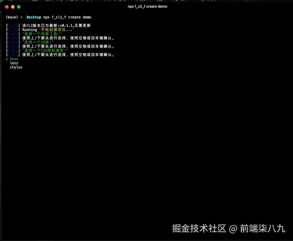 大家可以在自己的电脑环境执行上面的操作。npx f_cli_f create demo。
