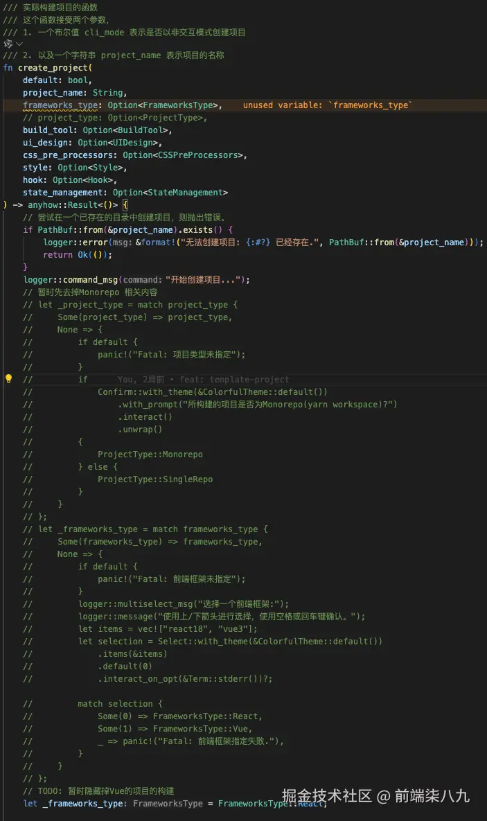 其实呢,要想用Rust写一个脚手架,上面的内容就足够了。剩下的核心的部分其实就是脚手架内部逻辑了。